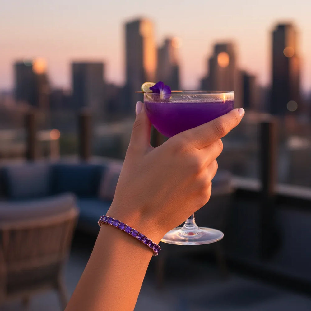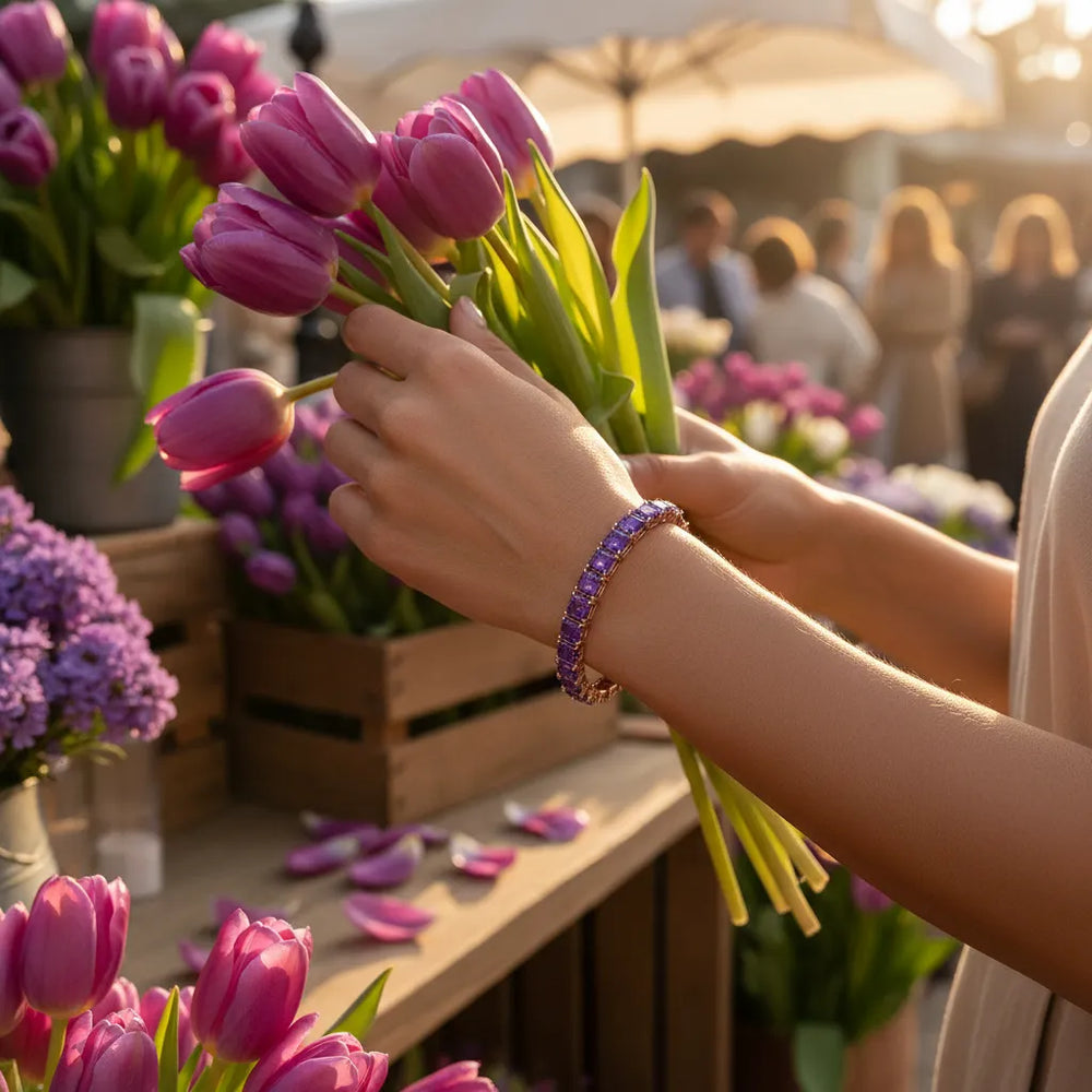 Entdecken Sie königliche Eleganz und geheimnisvolle Ausstrahlung mit unserem Princess Lab Tennisarmband mit violettem Saphir. Jeder bezaubernde, im Labor gezüchtete Saphir verkörpert spirituelle Tiefe und königliche Eleganz – ein faszinierendes Schmuckstück für alle, die das Außergewöhnliche lieben.