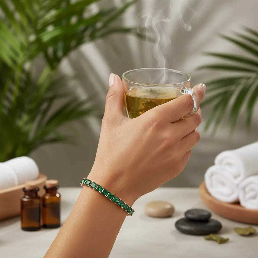 Erleben Sie Weisheit und Harmonie mit unserem Princess Lab Zambian Emerald Tennisarmband. Jeder einzelne der im Labor gezüchteten Smaragde verkörpert Ausgeglichenheit und inneren Frieden – ein edles Schmuckstück für alle, die zeitlose Eleganz suchen.