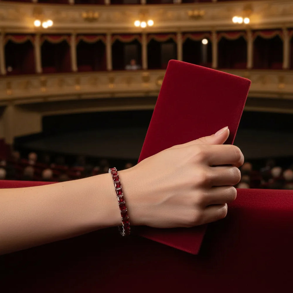 Affirmez votre passion et votre courage avec notre bracelet tennis en rubis sang de pigeon Princess Lab. Chaque rubis, d'une couleur éclatante et cultivé en laboratoire, incarne la puissance et l'audace : un bijou affirmé pour celles qui osent briller.