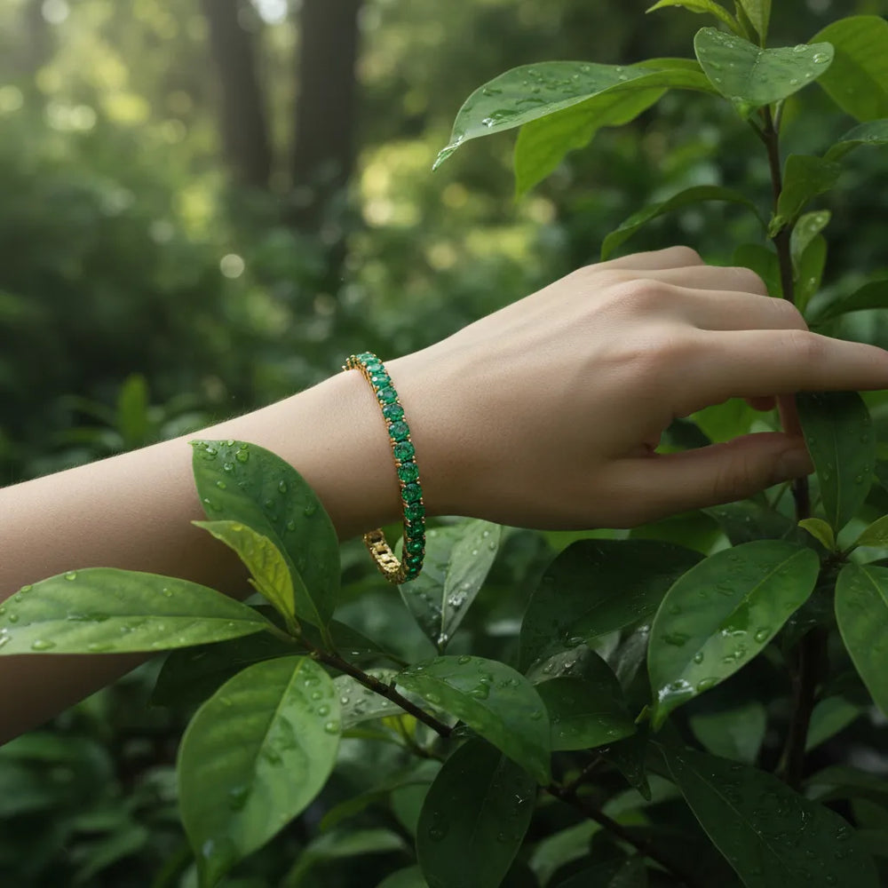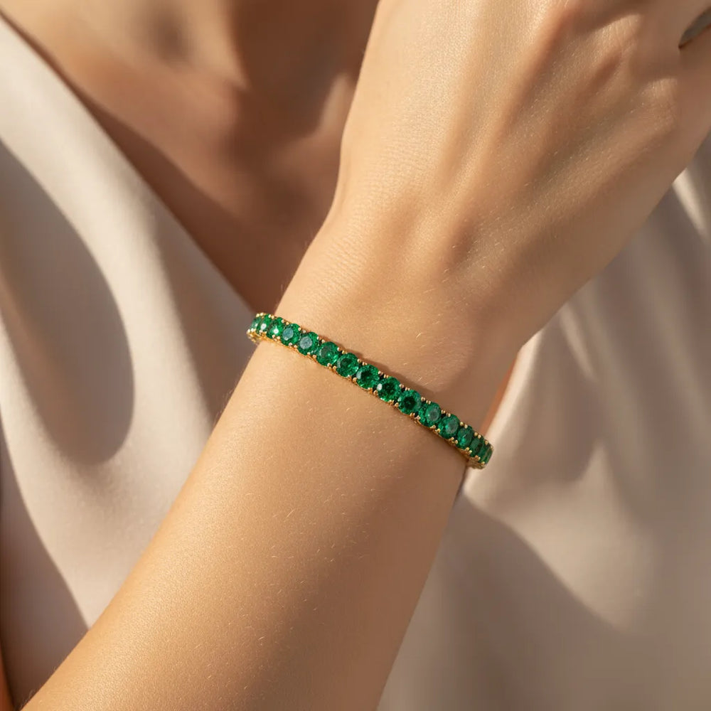 Bracelet de tennis en émeraude de Zambie - Symbole de sagesse, d'équilibre et d'harmonie