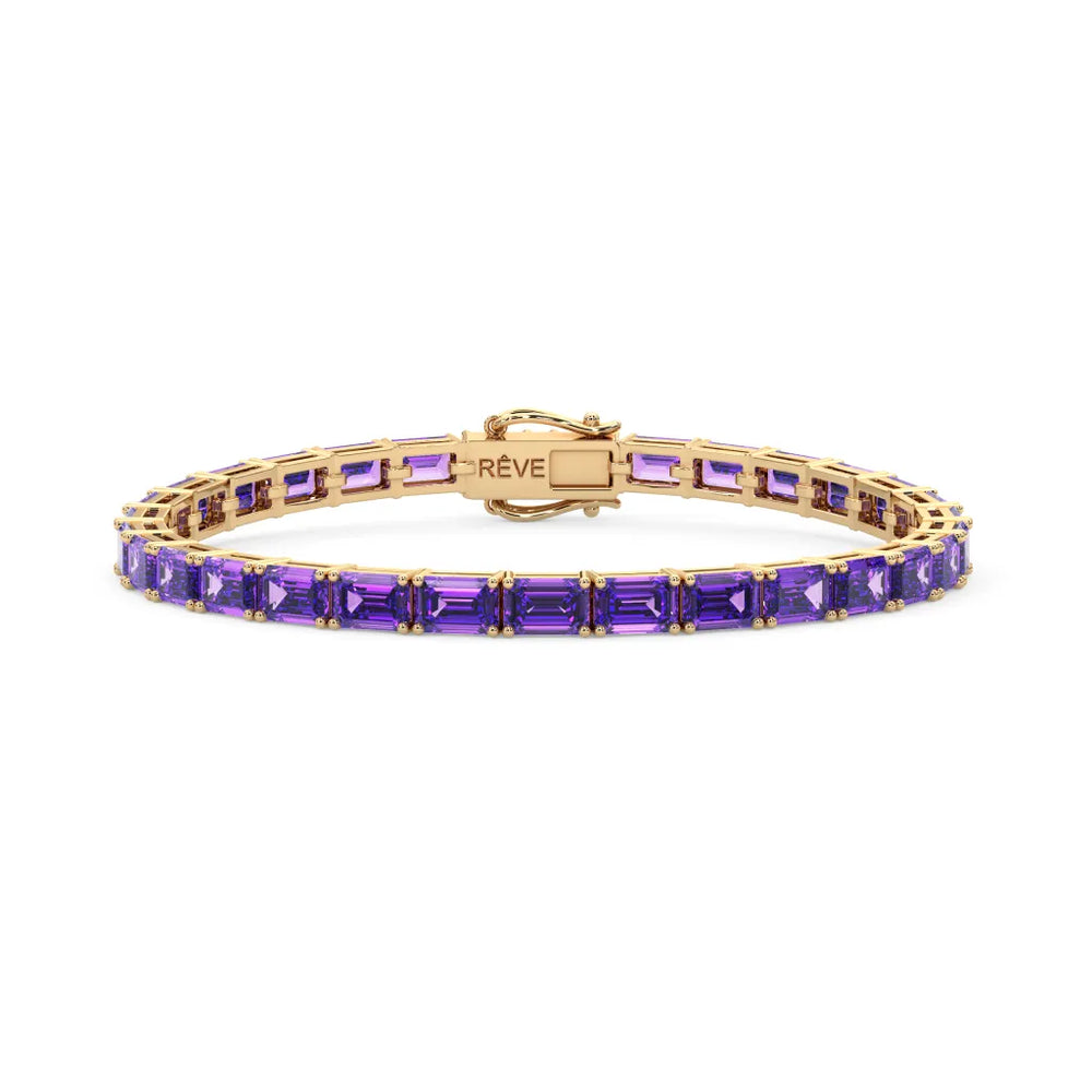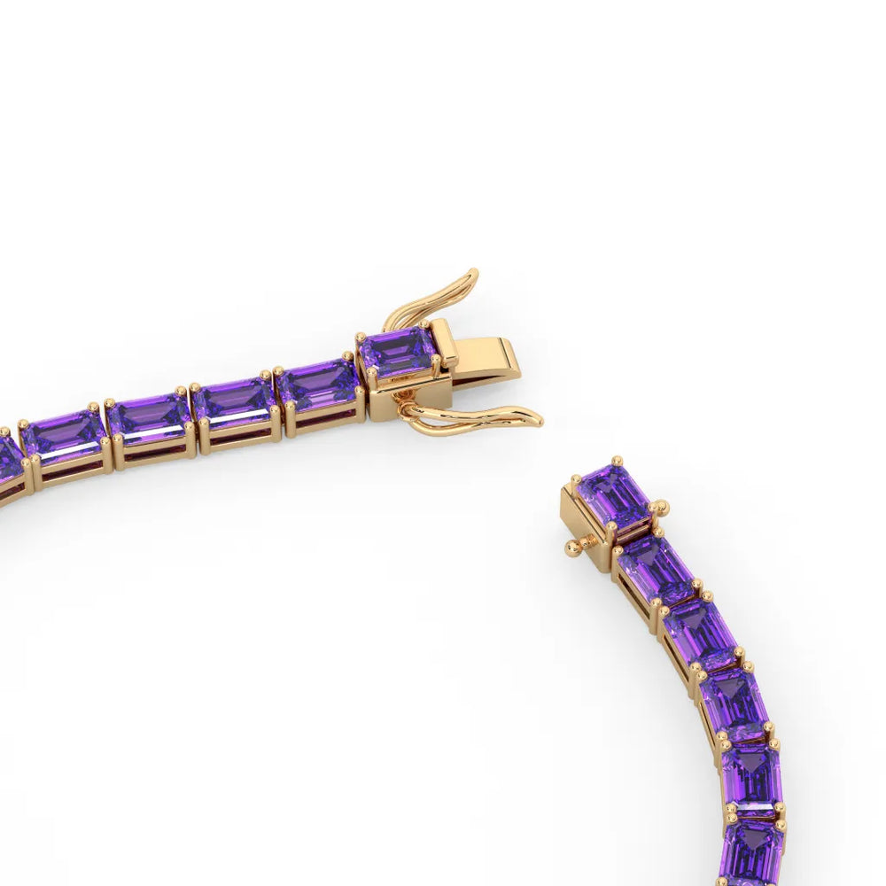 De superbes saphirs violets de laboratoire, taillés en émeraude, chaque pierre arborant d'envoûtantes nuances violettes, méticuleusement sertis dans un bracelet tennis au design intemporel.